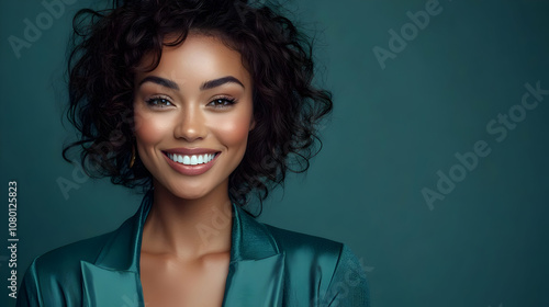 Smiling Woman in Green Jacket - Portrait Photo