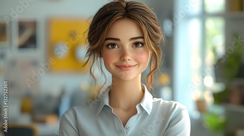 Smiling woman in home office with bright background