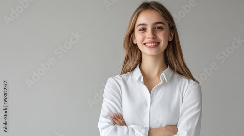 Smiling Woman in White Shirt