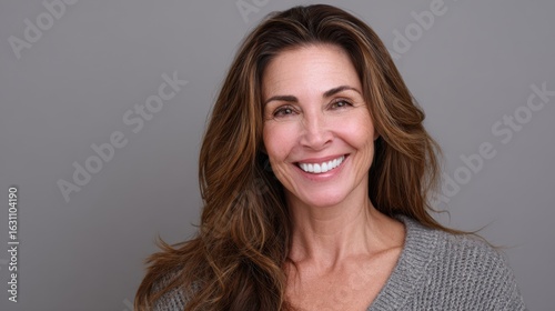 Smiling woman portrait studio photography neutral background close-up confidence and beauty