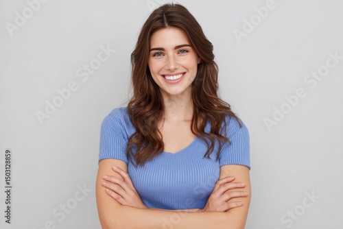Smiling Woman: Serene Portrait in Lavender Knit Top