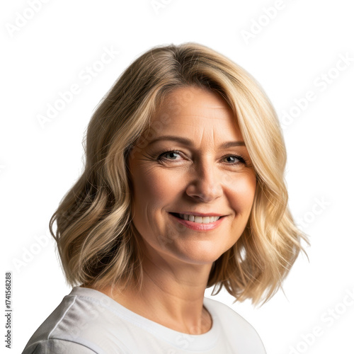 Smiling woman with blonde hair isolated on transparent background