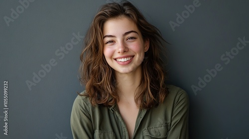 Smiling Woman with Natural Beauty in Casual Attire