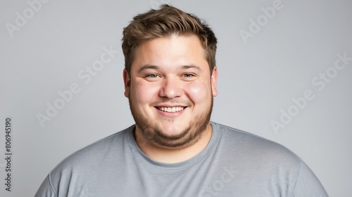 smiling young caucasian overweight man studio portrait on plain white background from Generative AI