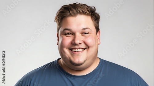 smiling young caucasian overweight man studio portrait on plain white background from Generative AI