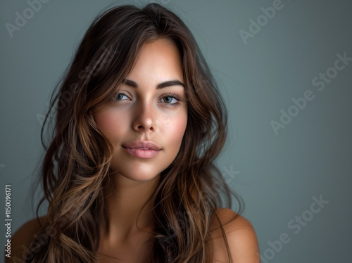 Smiling young glam lady with healthy wavy hairstyle. Beautiful woman portrait.