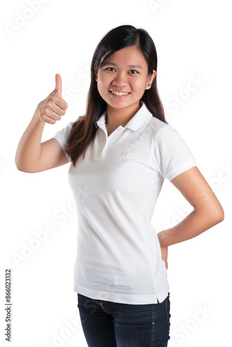 Smiling young lady with both her thumbs up, transparent PNG isolated on white background