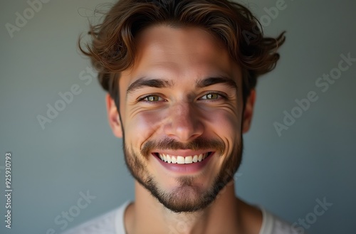 Smiling young man with curly hair, warm emotion, cultural identity focus, copy space ideal for Hispanic Heritage Month campaigns, versatile for marketing.