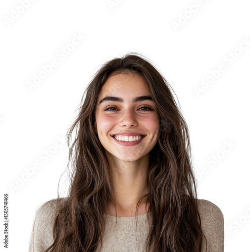 Smiling young woman portrait bright cheerful confidence isolated on transparent background