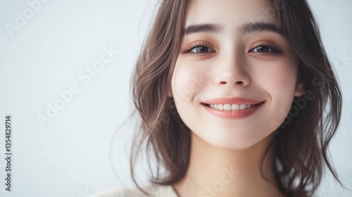 Smiling Young Woman Portrait with Clean Skin and Natural Light Look