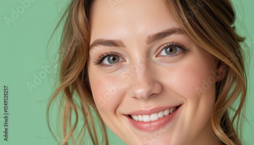Smiling young woman with natural makeup studio portrait photography soft background close-up beauty and confidence