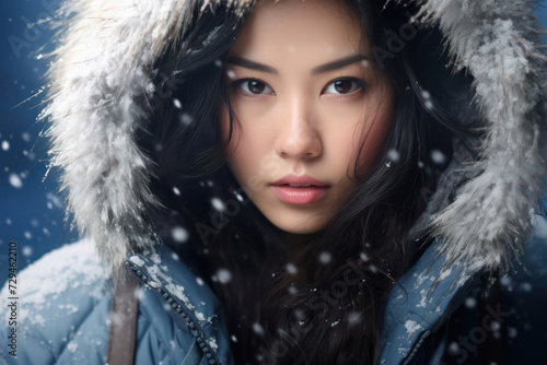 Snow Beauty: A Young Woman, Portrait of Winter Fashion and White Elegance in the Cold Season