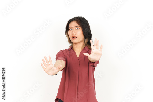 Stop Hand Rejection Gesture Of Beautiful Asian Woman Isolated On White Background