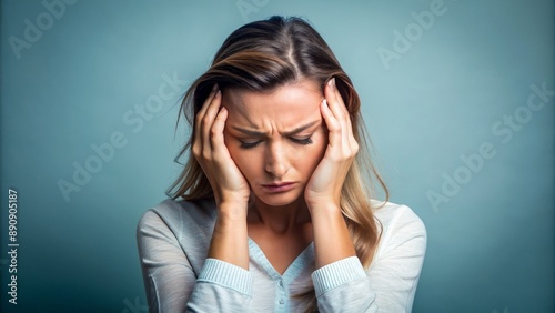 Stressed woman holding her head in pain due to headache, headache, migraine, stress, tired, tiredness, overwork, health