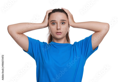 Stressful student before exam isolated on white