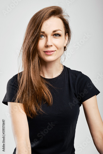 Studio portrait of beautiful young woman with no makeup looking at camera