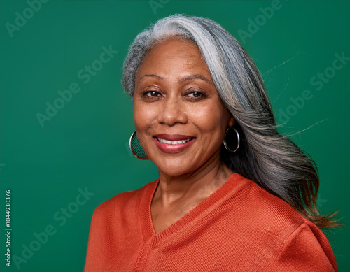 Studio Portrait of Mature Teacher Woman Happily Smiling Against Colored Studio Background