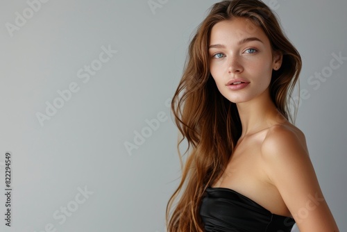 Studio portrait of model, hair care, or woman for natural beauty, wellbeing, or shine on white background. A glowing young Indian girl or salon spa self-care cosmetics for grooming