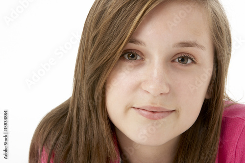 Studio Portrait Of Smiling Teenage Girl