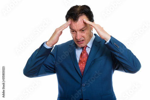 Studio shot of mature stressed businessman having headache
