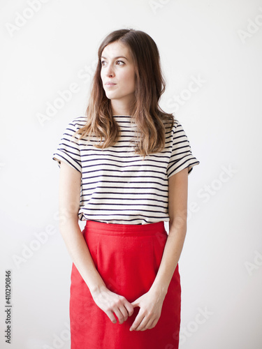 Studio shot of young woman looking away