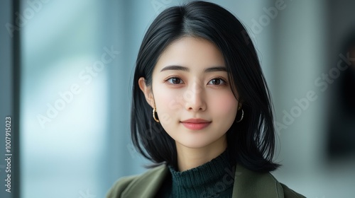 Stunning Asian women showcase smooth matchahued hair in a professional studio shoot against a sleek grey backdrop.