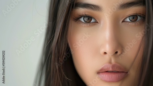 Stunning closeup of a confident, attractive woman, showcasing her vibrant features and captivating expression.