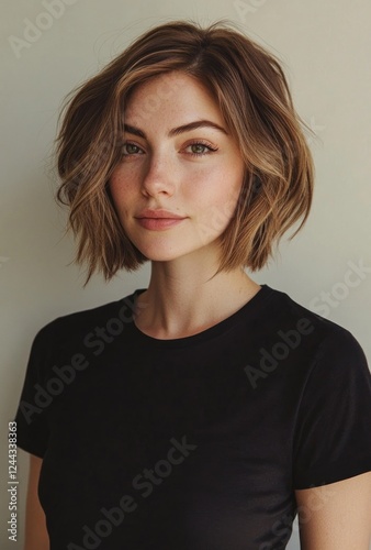 Stunning Portrait of a Woman with a Wavy Bob Haircut