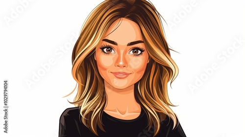 Stylish girl in a chic black tshirt, featuring long brown hair with striking blond strands.