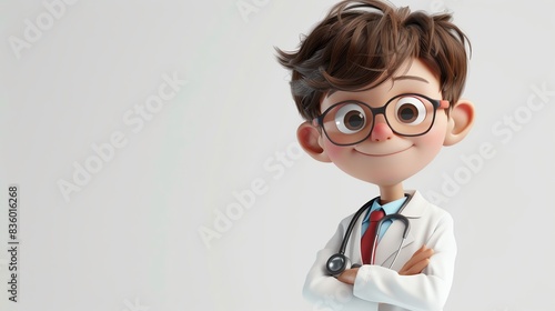 Stylized 3D cartoon young boy as a doctor, no logo, white background, high quality 8k