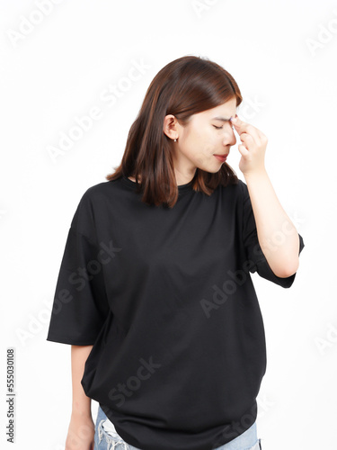 Suffering Headache Gesture, Head Pain Of Beautiful Asian Woman Isolated On White Background