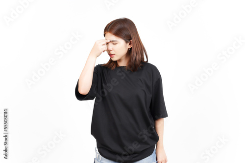 Suffering Headache Gesture, Head Pain Of Beautiful Asian Woman Isolated On White Background
