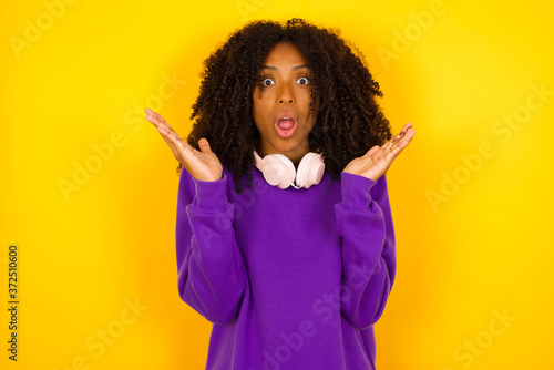 Surprise concept. Portrait of astonished beautiful girl looking surprised in full disbelief wide open mouth with hands near face with braided hair. Positive emotion facial expression body language.