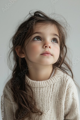 Sweet Girl with Brown Hair Looking Upward with Curiosity Generated AI