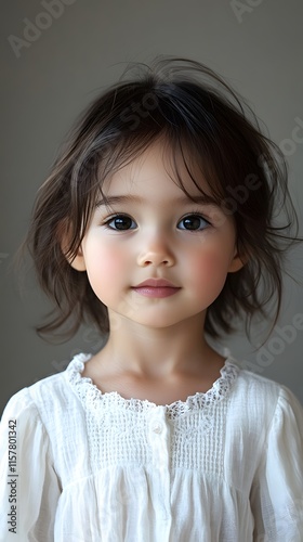 Sweet Innocence: Portrait of a Dark-Haired Girl with Brown Eyes