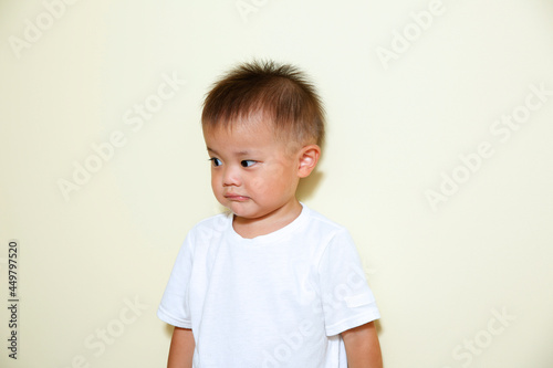 可愛い日本人の白いTシャツの男の子。イケメンな2歳児です。