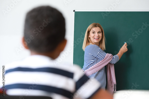 Teacher conducting lesson in classroom