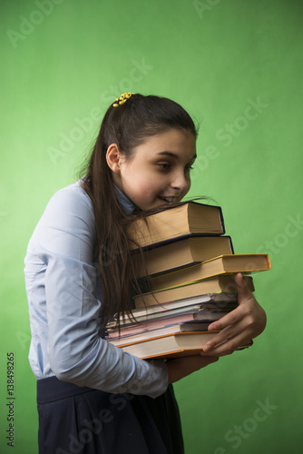 teen girl with stack of books