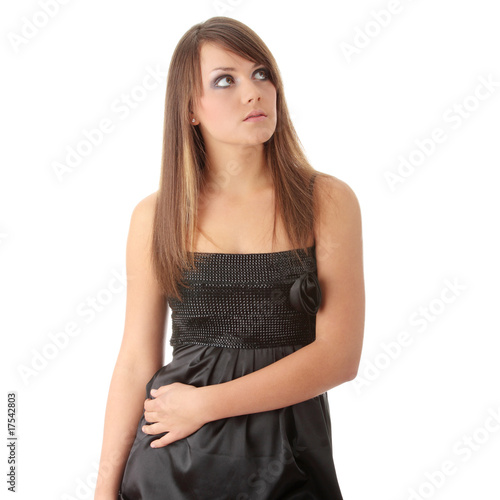 Teen woman in black elegant dress