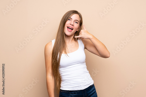 Teenager blonde girl over isolated background making phone gesture. Call me back sign