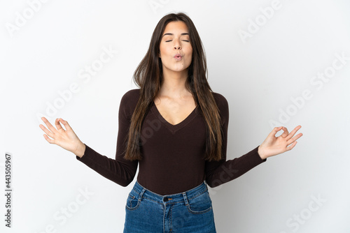 Teenager Brazilian girl isolated on white background in zen pose