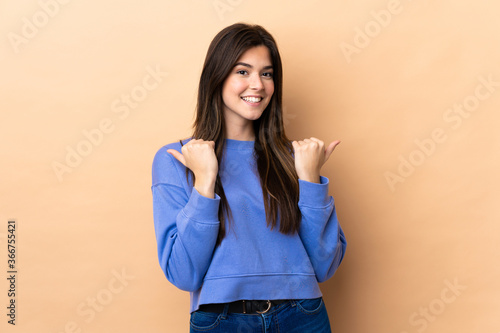 Teenager Brazilian girl over isolated background with thumbs up gesture and smiling