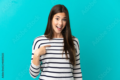 Teenager Brazilian girl over isolated blue background with surprise facial expression