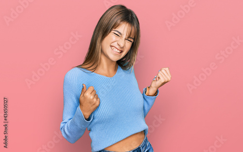 Teenager caucasian girl wearing casual clothes excited for success with arms raised and eyes closed celebrating victory smiling. winner concept.