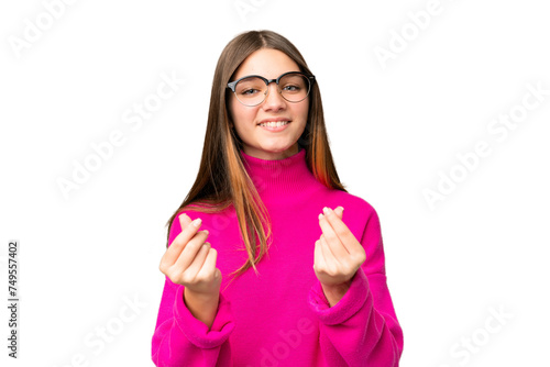 Teenager girl over isolated chroma key background making money gesture