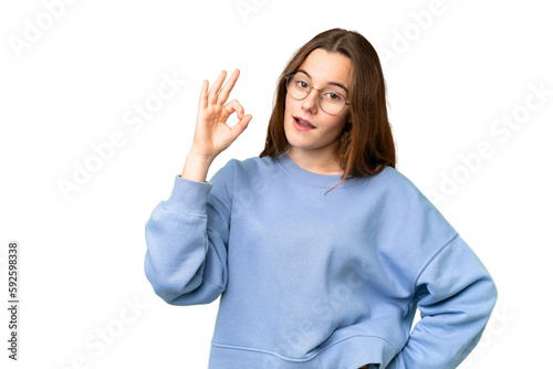 Teenager girl over isolated chroma key background showing ok sign with fingers