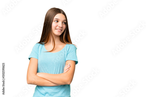 Teenager girl over isolated chroma key background with arms crossed and happy