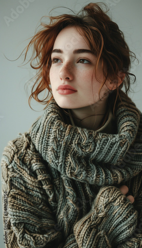 Teenager posing in oversized wool sweater