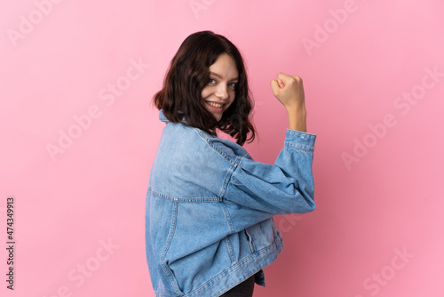 Teenager Ukrainian girl isolated on pink background celebrating a victory