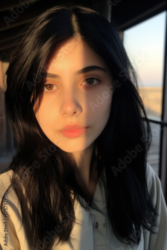 Teen's Moody Selfie with Black Hair, Raw Selfies of random people